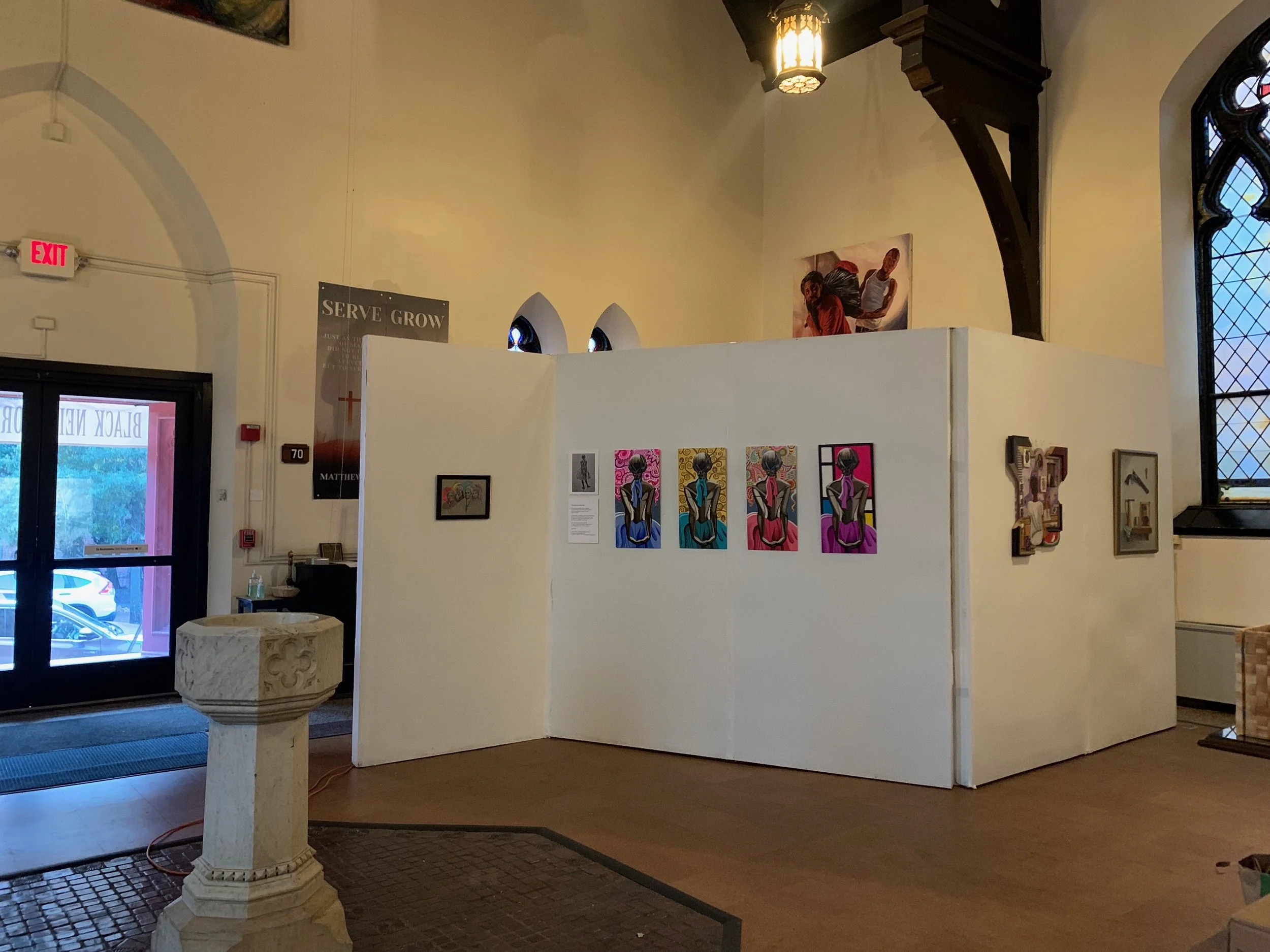 A walk through our church will reveal our support of local visual artists. The sanctuary houses images and sculpture created by members of the congregation who are professional artists. And as you come close to the glass doors that mark the church entrance, you can see the flats displaying a rotating show of works created by students from MICA and community artists.
